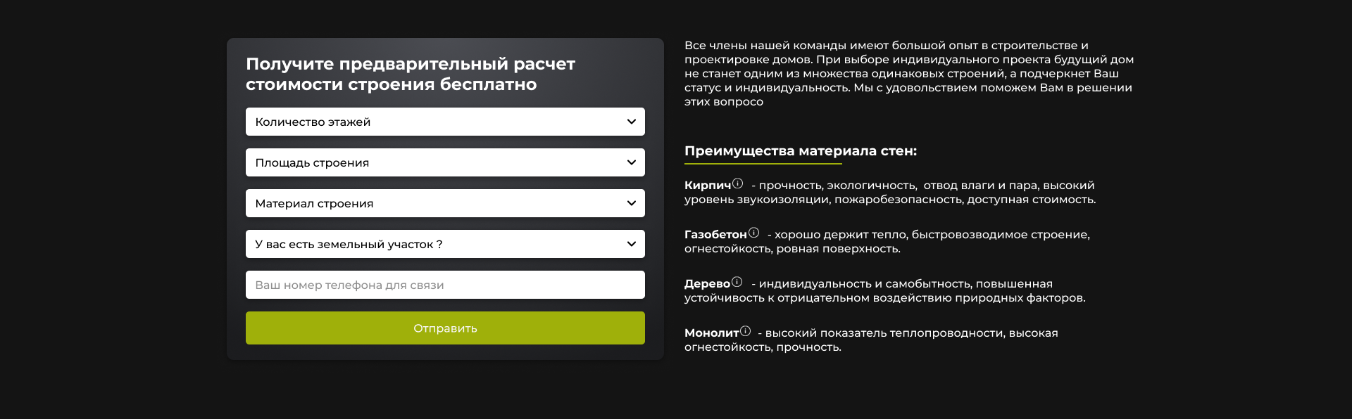 Все члены нашей команды имеют большой опыт в строительстве и проектировке домов. При выборе индивидуального проекта будущий дом не станет одним из множества одинаковых строений, а подчеркнет Ваш статус и индивидуальность. Мы с удовольствием поможем Вам в решении этих вопросов